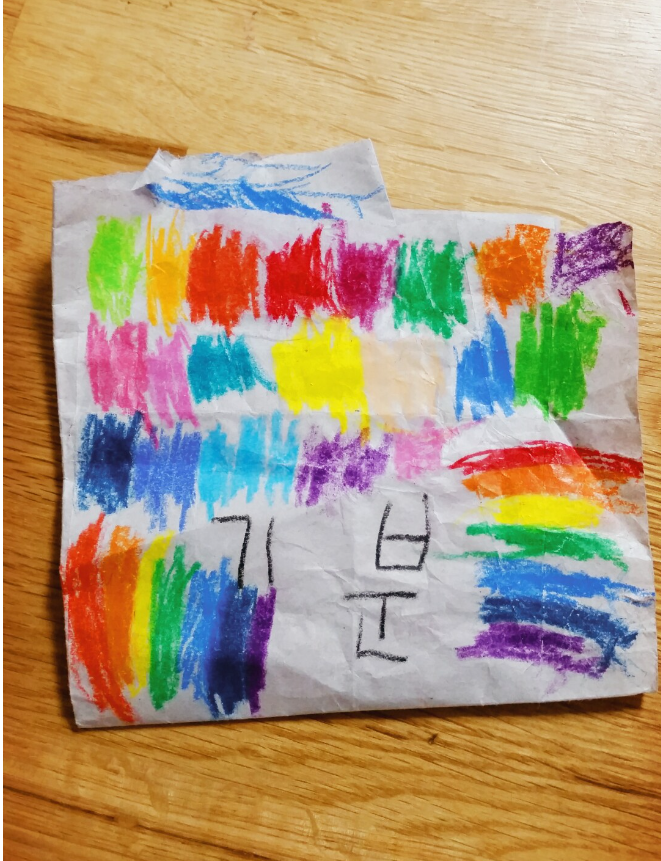 물감으로 슥슥 그린 첫째, 둘째 그림