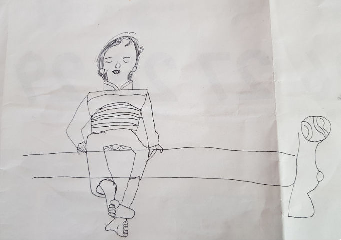 그러다 갑자기 놀라요. 늘 곁에 있어 몰랐던 아이가 훌쩍 커버린 것과 동시에 그냥 놀기만 했는데도 이렇게 잘 자라고 있구나 느껴지는 것에. 그중의 하나가 그림입니다. 외갓집에 놀러 갔다가 소파에 앉아계신 엄마를 그린 거예요. 지나간 달력 뜯어서 뒷장 펴놓고 볼펜 하나 집어 들고 할머니를 뚫어지게 쳐다보다가 망설임 하나 없이 슥슥 그리는 거죠. 가족들이 우아 잘 그렸다 칭찬하면 발 그리는 게 어려웠다 소파 무늬가 어려웠다 투정 대지만 그 투덜이 아이에게 내심 부러운 건 그림을 잘 그렸다 못 그렸다가 아니라 그리고 싶으면 망설임 없이 그냥 거기에 빠져들어한다는 거죠.